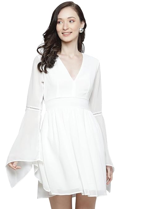 Sapphirea Women's Georgette Knee-Length Skater Dress – Stylish Casual Party Wear for Women